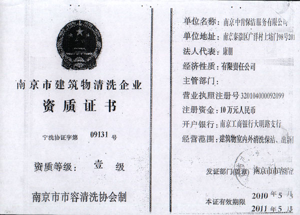 南京保潔公司注冊(cè)資金10萬(wàn)元,是江蘇省家庭服務(wù)協(xié)會(huì)會(huì)員單位,江蘇省家政服務(wù)業(yè)分類執(zhí)行標(biāo)準(zhǔn)起草制定單位,先后被評(píng)為江蘇誠(chéng)信服務(wù)先進(jìn)單位、南京是家政服務(wù)定點(diǎn)培訓(xùn)單位、南京市十佳建筑物清洗企業(yè)、南京市誠(chéng)信示范單位、南京市鼓樓區(qū)三信三優(yōu)單位。董事長(zhǎng)康朋是江蘇省家庭服務(wù)業(yè)協(xié)會(huì)副會(huì)長(zhǎng)、江蘇省家政服務(wù)分類執(zhí)行標(biāo)準(zhǔn)主要起草人。
